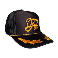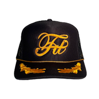 Sail the high steeze in this high crown Fit trucker embellished with gold leaf and Classic Fit embroidery. Embroidered in USA.